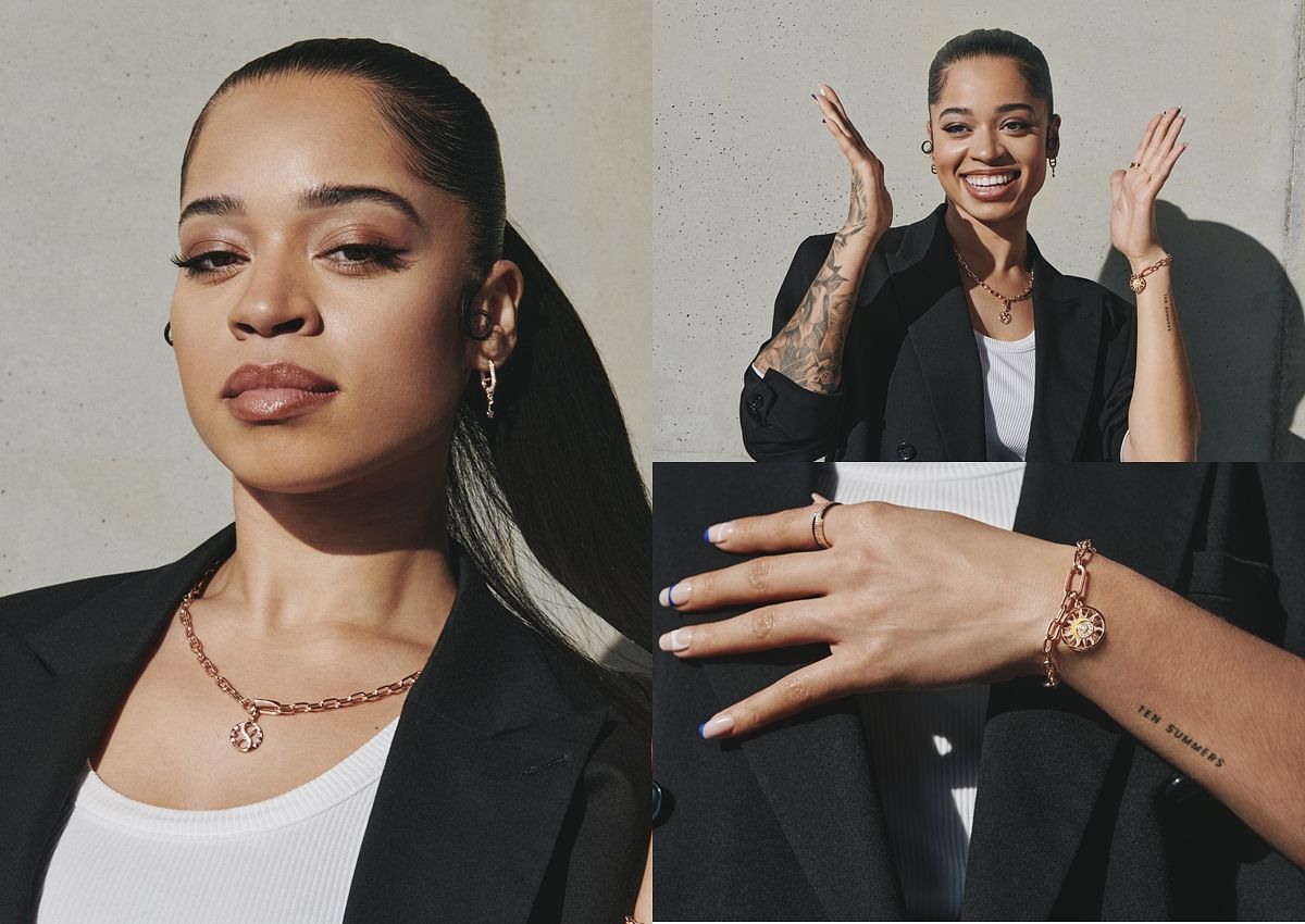 個性十足的英國90後R&B歌手 Ella Mai,以鍍14k玫瑰金Pandora ME 鎖鏈圈項鏈及手鏈吊飾出鏡,其中Pandora ME 無限符號圓牌吊飾,象徵和諧、平衡和無盡愛意。無限符號和鏤空圓形的交織,亦代表著永恆連繫和無限可能。另外,Ella手鍊上的Pandora ME 太陽力量圓牌吊飾以象徵能源、生命和力量的太陽為靈感,色彩繽紛的幾何風格太陽造型,在夏日釋放太陽般熾熱的正能量。