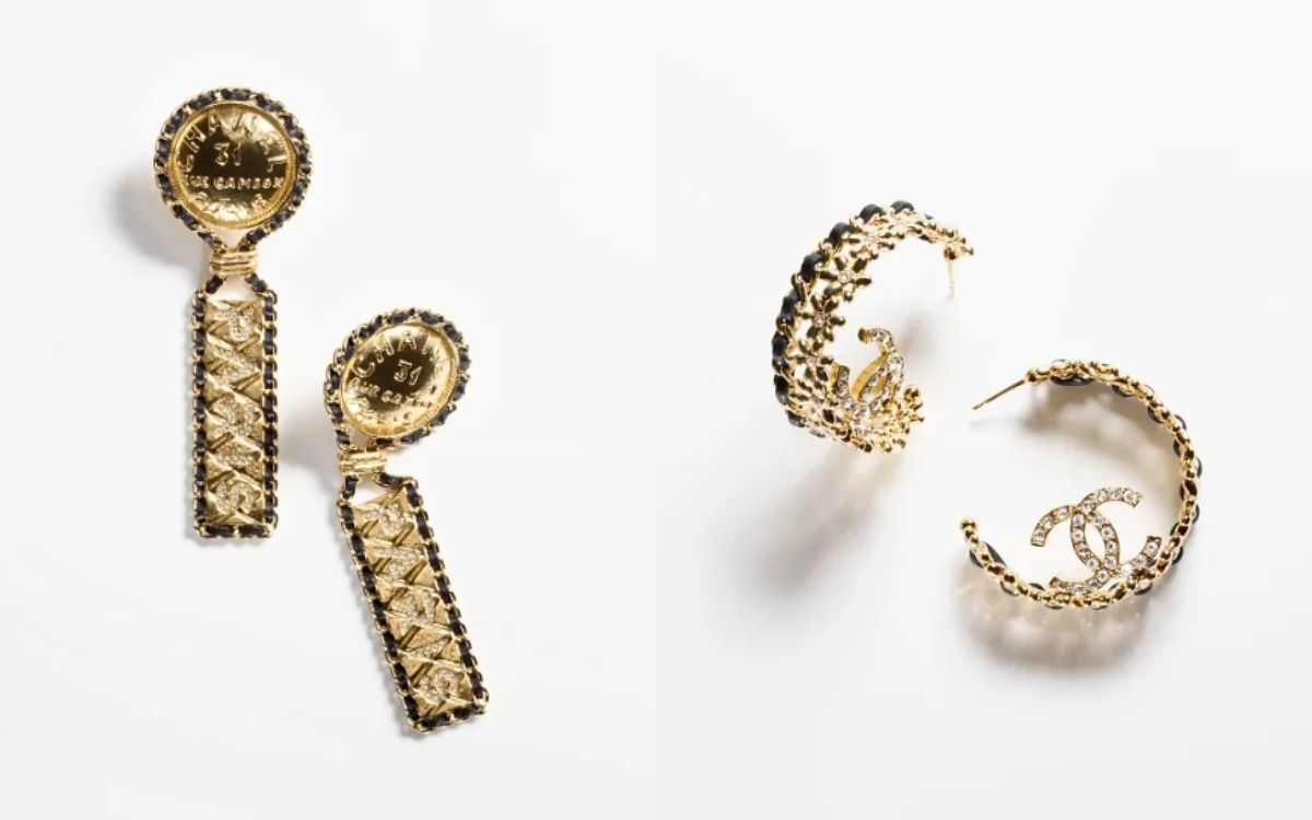 金屬與琉璃珠相互點綴出豐富層次、也是香奈兒耳環予人的多變形象,將小牛皮與金屬材質混搭、整副耳環都洋溢著專屬CHANEL的時髦氛圍,別具匠心的皮穿鏈帶、香奈兒小手袋也都令人一見傾心。