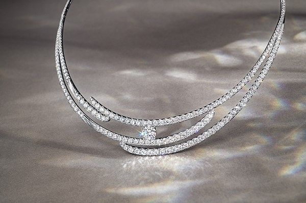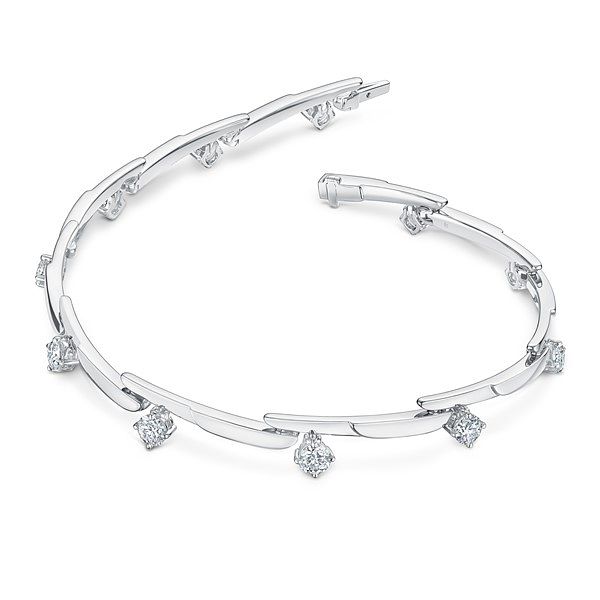 Vela Crossover系列則新增加了全系列唯一一款手鍊,一片片原本相交堆疊於頸項的羽毛鍊轉換至手腕上,展現由一節節金屬羽毛絞接而成的鍊身有多麼柔軟服貼,環繞點綴一顆顆完美車工鑽石,突顯Hearts On Fire精湛的珠寶工藝。