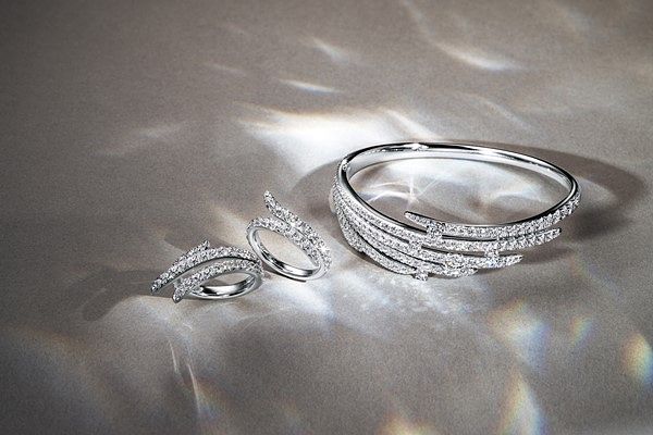 法式鑲嵌依然是Vela系列的焦點,在貴金屬上雕琢出深V形刻面,經匠師精細拋光,再結合「全世界車工最完美的鑽石」鑲嵌其上,可讓光線在鑽石內徹底折射出最動人的火光。全新推出的Vela鎖骨鍊與手鐲,不對稱設計的法式鑲嵌鑽石羽毛線條將視線導引往中央靠攏,輕盈卻穩固地托住中央主鑽,霸氣綻放璀璨光芒,更加令人目不轉睛。今年6月首度推出時令眾人驚豔的Vela Cocktail白K金鑽石套戒,於今放大為Vela白K金法式鑲嵌鑽石手鐲,手鐲上錯落托高鑲嵌點綴鑽石,呈現豐富層次變化的奢華光彩。