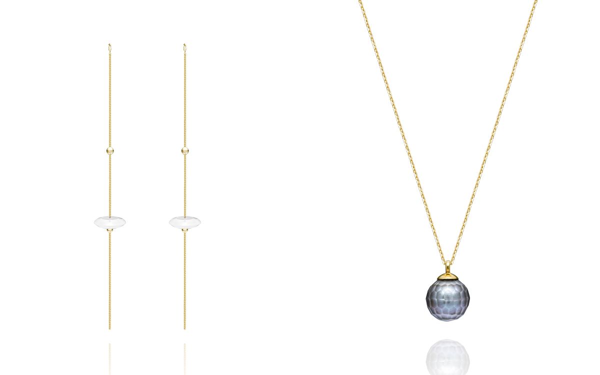 此獨家限定系列即便在日本亦難覓蹤影,通常僅於快閃店活動中短暫亮相。其中㇐款限定系列的靈感源自西洋棋,巧妙選用黑、白與帶灰的藍色石英,呈現出西洋棋經典的色調。不論是耳環還是項鍊,外觀輪廓主要以極簡的幾何圖形基座為主,搭配梯形切割,突顯出整體的現代摩登風格。