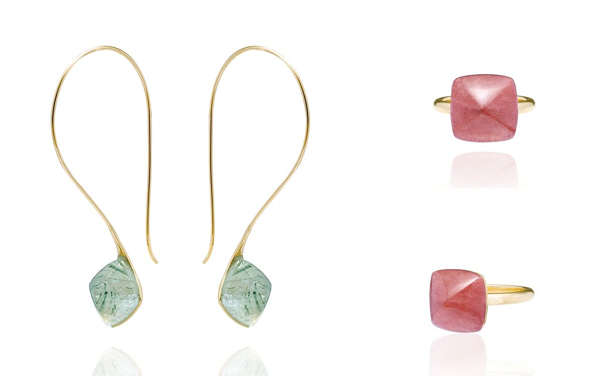 圖片來源:agete 另㇐系列則以金字塔糖果為靈感,汲取自 12 世紀約旦獨特的糖果製作工藝,賦予寶石外觀如同可愛糖果的設計。運用古老而獨特的糖塔式切割,完美呈現寶石原礦的最真實之美。相較於現代的繁複切割技術,更注重保留寶石的天然質感,追求寶石深邃的色彩。