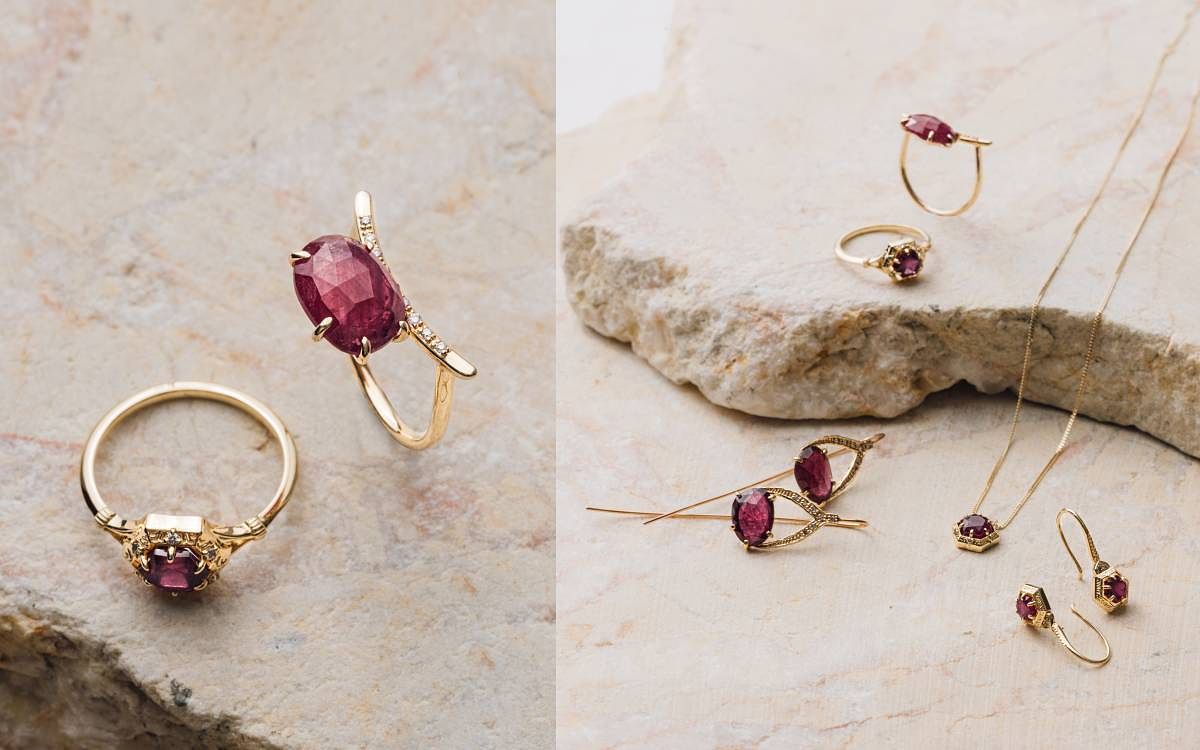 圖片來源:agete 左:agete 銀座復刻系列 10K x 紅寶石 x 鑽石 夜色 戒指 NT$22,500