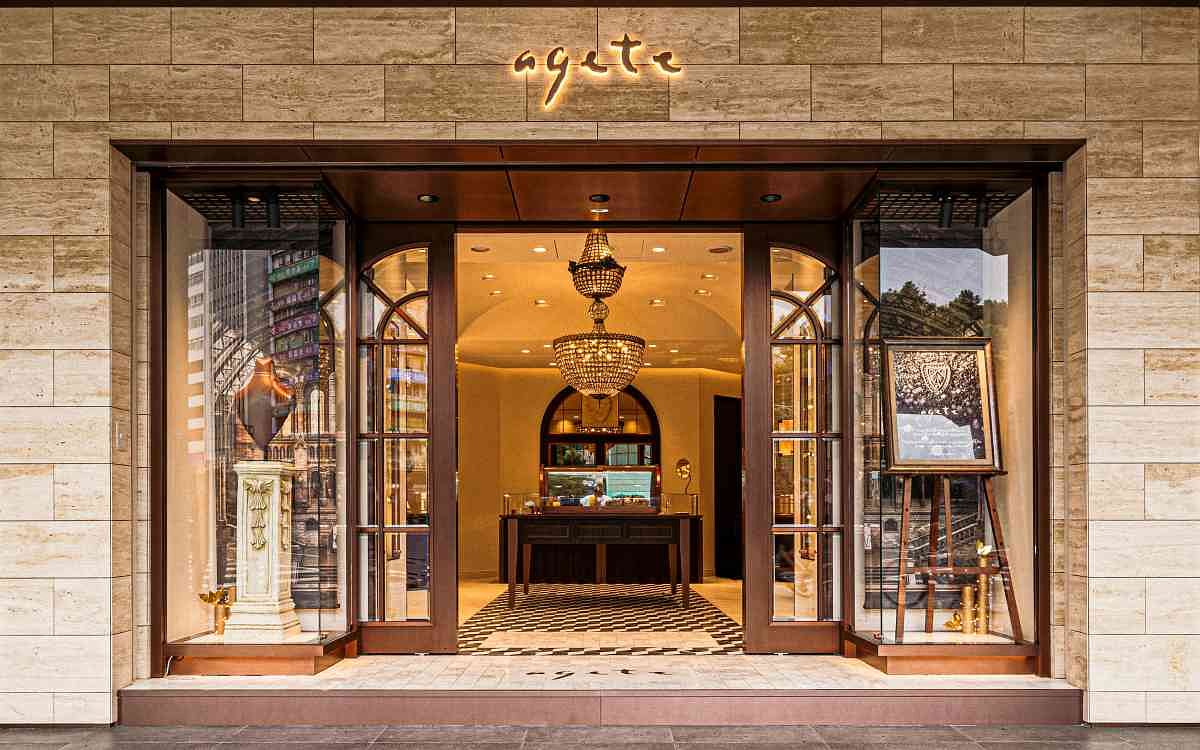 圖片來源:agete agete 忠孝旗艦店新址在捷運忠孝敦化站登場。將東京青山本店的精髓搬來台北,為熙攘的忠孝東路注入了㇐抹古韻風采。外觀的義大利米蘭洞石磚牆交錯,沿襲㇐貫的維多利亞式風格的經典,㇐進門即被高雅的沈穩溫暖氣氛包圍,中古世紀的吊燈與黑白灰大理石地板交相輝映,仿如置身於古堡般的修道院。店內古董家具與暖暖黃光相互輝映,展現浪漫時代風情。agete獨特的藝術氛圍,散發濃厚的歷史底蘊,傳遞的不僅是華麗的珠寶,更是㇐種將細膩質感融入生活的概念。