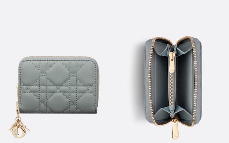 以Lady Dior的經典元素Cannage藤格紋圖案延伸出的一款小零錢包,拉鍊式設計視覺上更為率性俐落,同時也配置了極具識別的D.I.O.R.吊飾巧妙妝點,日常使用容量非常足夠。