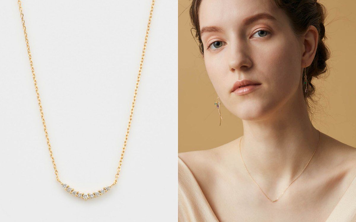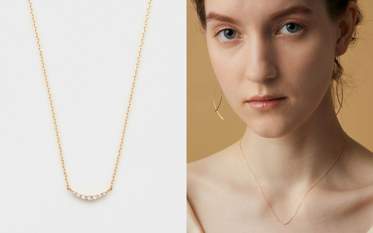 圖片來源:agete鑽石優雅地排列成微笑曲線,修飾頸部線條,完美展現簡單之美。無論單戴或疊搭,都能彰顯獨特風格。K18鑽石項鍊相比K10鑽石項鍊,鑽石數量更多,更顯華麗。