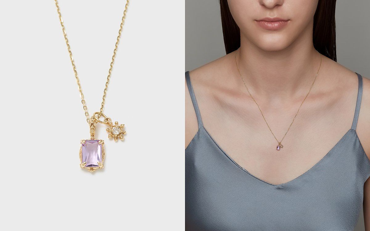圖片來源:agete設計背景源自傍晚時分,透過窗戶眺望天空中最耀眼的金星,默默許下心願。紫水晶象徵著窗戶,墜頭處的精雕細琢如同閃爍的星光,而鑽石則代表著金星,閃耀著無與倫比的光芒。適合天真爛漫的鄰家女孩。