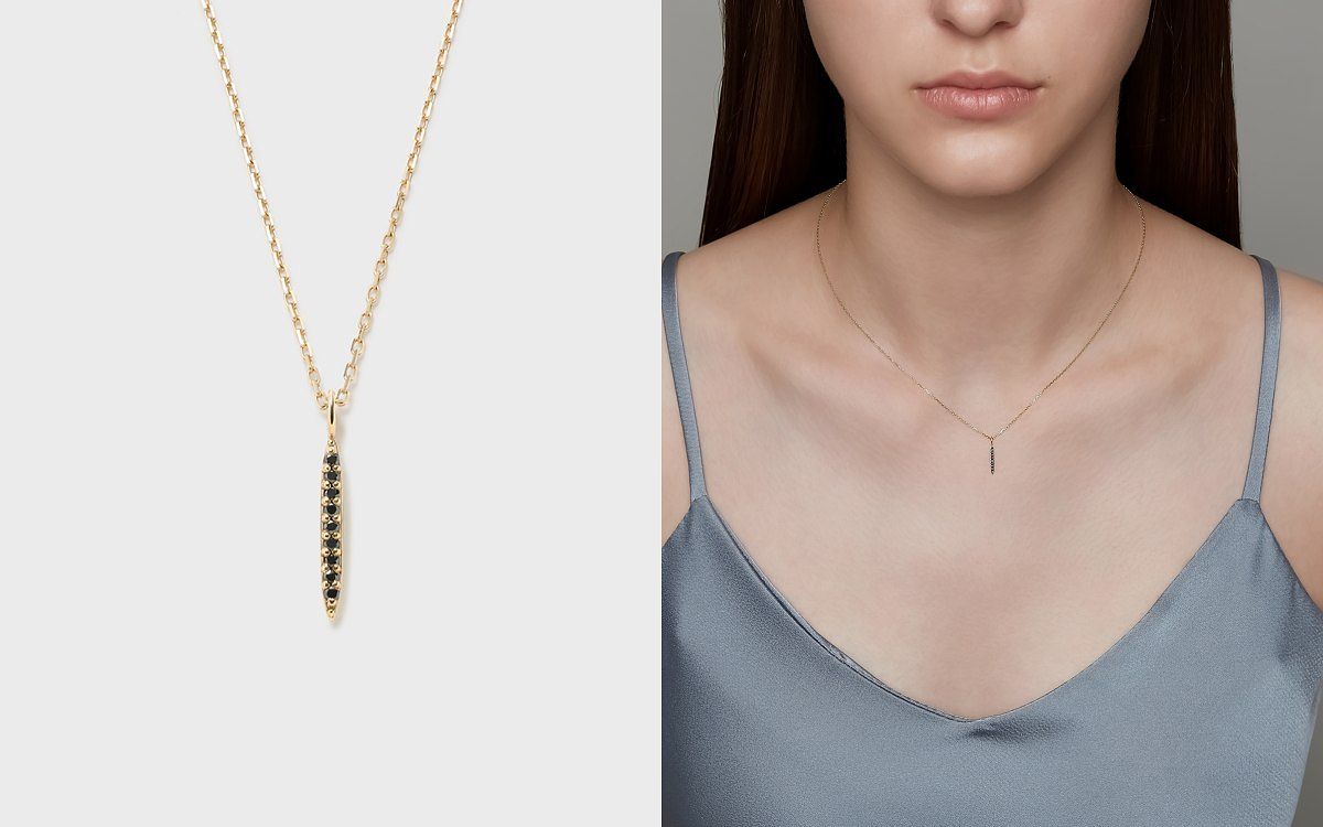 圖片來源:agete設計靈感來自於水面上閃閃發光的漂浮小船。金座特意刻畫成狹長的橄欖形小船,點綴著九顆黑鑽,如同船隻劃過水面時激起的水花,描繪出一幅動人的畫面。如同鎖骨Y字鍊的垂直輪廓,適合喜歡俐落且富有個性風采的女孩。