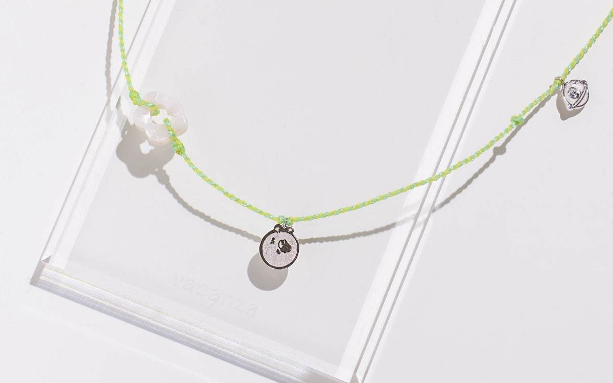 vacanza x KINGJUN聯名完美展現飾品與文創交流的獨特風格,除了項鍊、手鍊、耳環等多款飾品,更推出了髮夾、飾品盒等周邊商品,共20件多元品項供粉絲收藏!聯名商品首推「純銀兩用手鍊項鍊」, KINGJUN宇宙的三個明星角色 化身為925純銀低敏金屬材質小墜飾,金屬搭配異材質元素,以亮色系疊加,碰撞出潮流Y2K風格;其蠟繩皆由台灣職人手工多股編織,不吸水、不形成異味,同時能當項鍊或是纏繞變成手鍊,創意飾品配戴方式與KINGJUN搞怪風格不謀而合,成為夏天出遊、海灘泳裝穿搭的必備飾品!