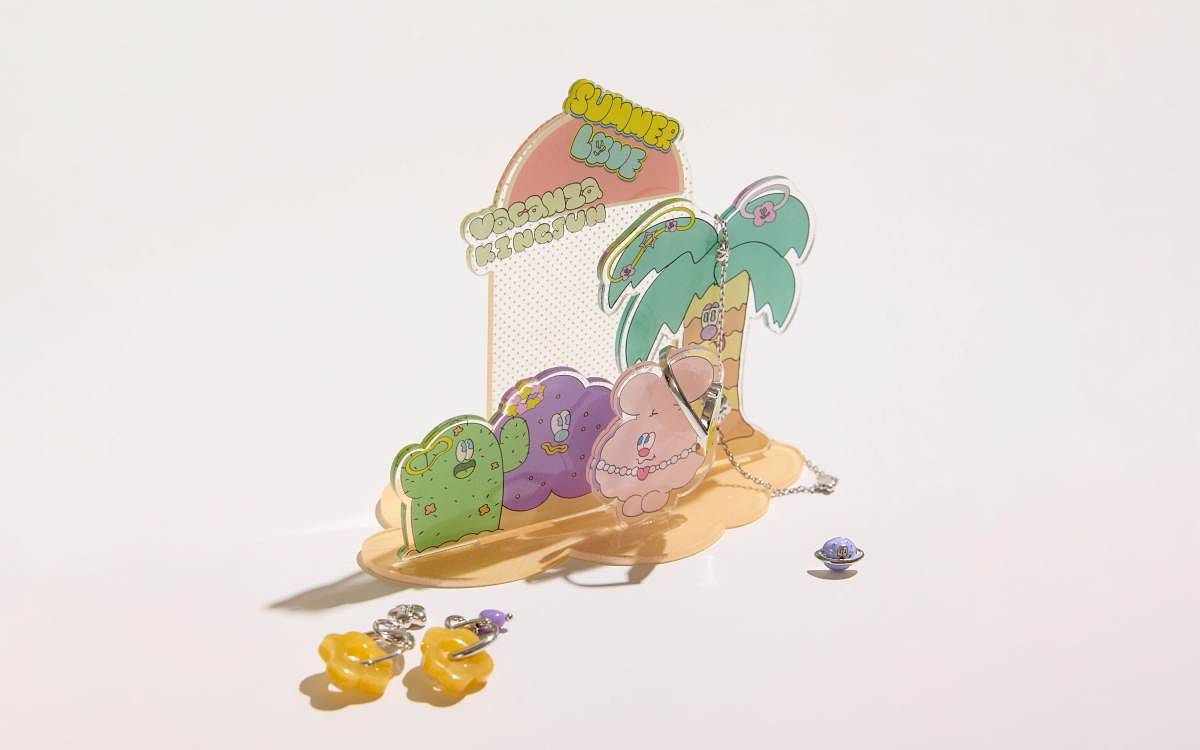 KINGJUN是台灣知名插畫藝術家,於2014年開始以強烈繽紛色彩打造特色鮮明的「怪誕宇宙」,又以搞怪又淘氣的「蠢兔」、可愛卻危險的「病毒花」、天然呆的「BT」為核心角色,其生動性格搭配討喜外型,吸引各年齡層的粉絲喜愛,不僅在社群媒體上擁有大量粉絲,更經常與各大品牌合作,每每都能掀起一股搶購熱潮。本次首度跨入飾品品牌合作的KINGJUN表示:「因為是第一次與飾品品牌合作,我在開發期間『許願』了很多飾品設計和款式,更推出了少有的男款尺寸,很感謝vacanza能將其實現,並一起努力讓這次的聯名與眾不同,希望粉絲們都會喜歡怪誕宇宙的『Summer Love』!」