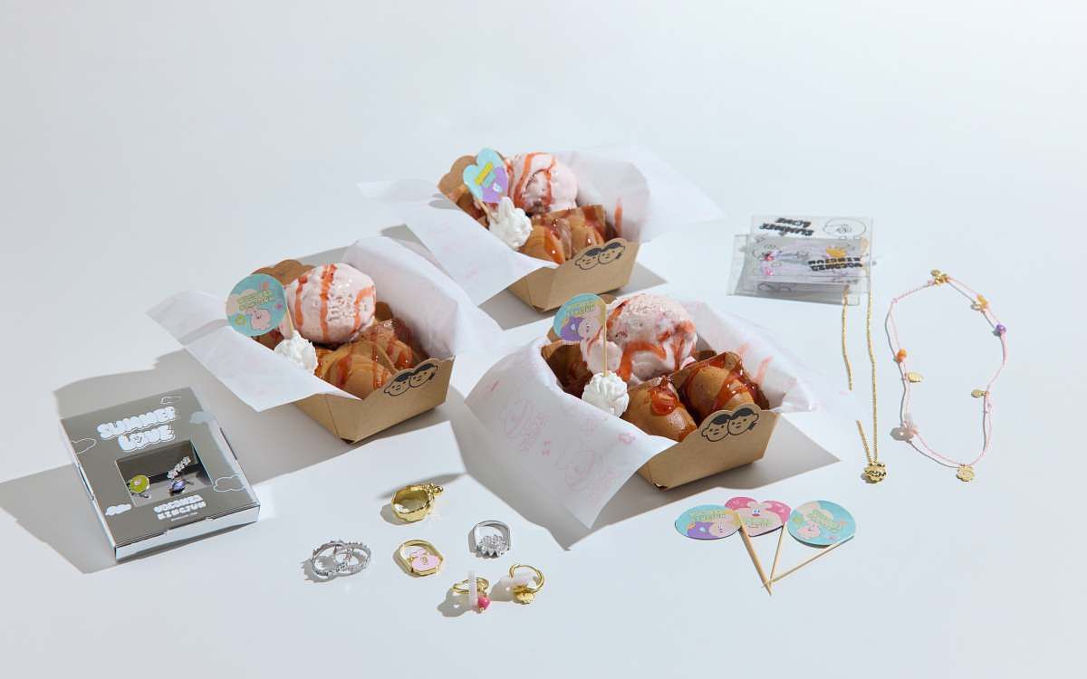 圖片來源:vacanza以「Summer Love」為題, KINGJUN在本次聯名視覺中,將蠢兔華麗戴上珍珠項鍊,項鍊中間的v字代表vacanza也能當作愛心,與病毒花一起大方放閃;一旁的BT則化身為冰品,夏日炙熱的「愛」讓它漸漸融化! KINGJUN以藝術家的獨到視角,譜出飾品的夏日戀曲,一秒感受繽紛活潑的夏季氛圍!