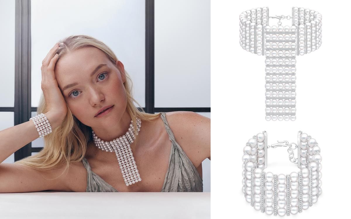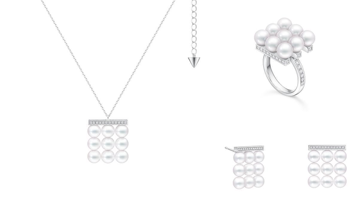 適逢70週年,以7顆珍珠為一組,光澤亮麗的南洋白蝶珍珠直線排列,組合成幾何圖案,熠熠生輝的密釘鑲鑽,完美演繹balance系列獨特的摩登形象,高貴典雅。
