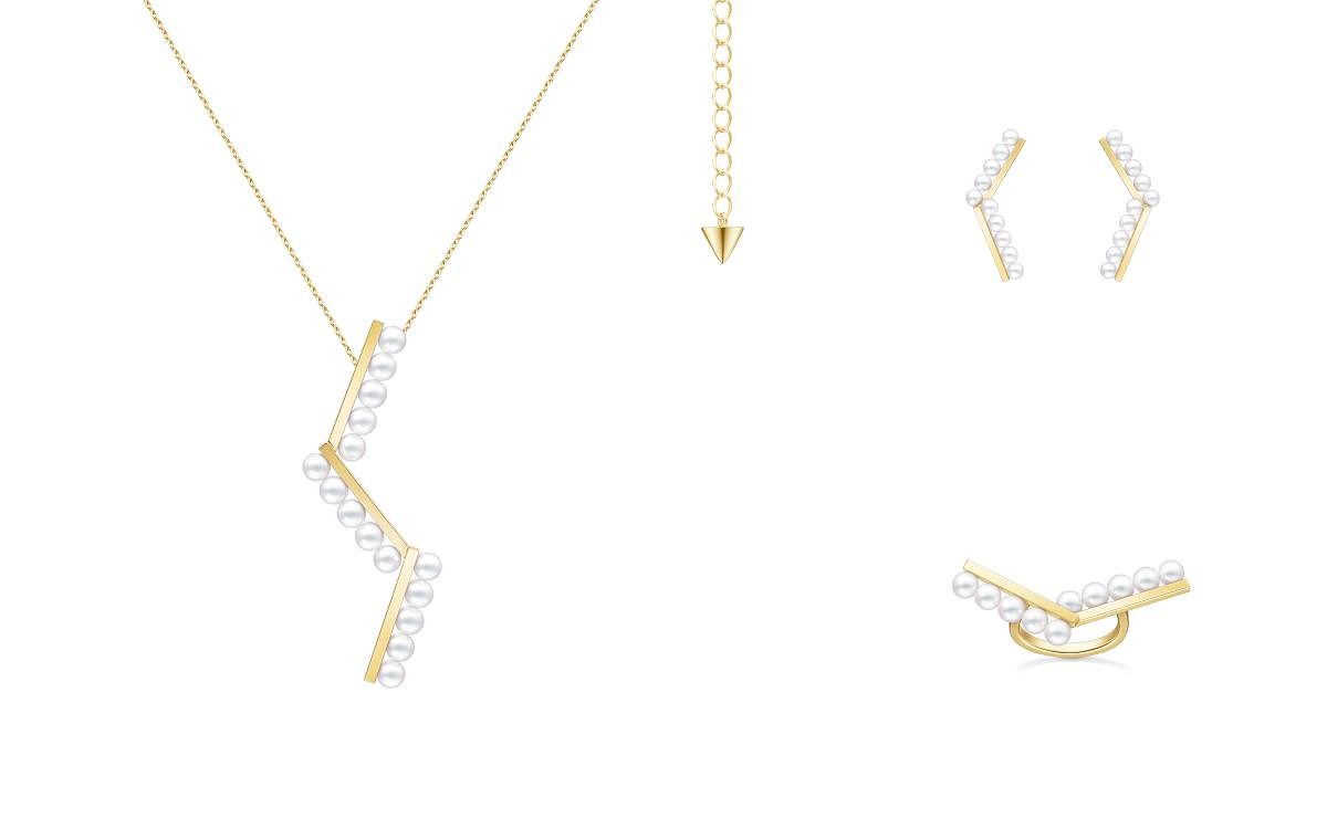 「balance arm」運用balance設計出象徵攜手合一的造型。圖形式項鍊之連結部分如手臂般可靈活活動,玩心四溢的圈形耳環隨著觀賞角度不同呈現萬千風采,長形墜飾項鍊的輪廓時尚有型,綻放摩登魅力。透過TASAKI工藝技術自豪的精密工法調整造型的高低落差,同時疊合成階梯狀,藉此創造出具立體感的層次。