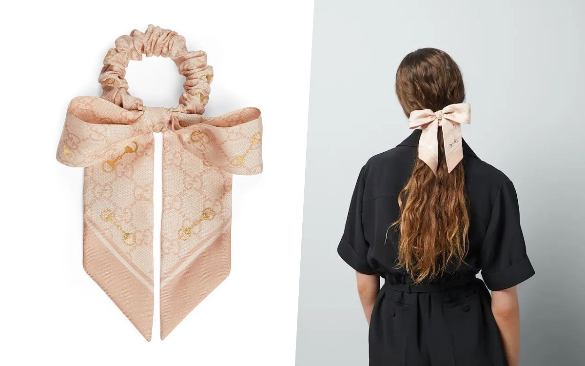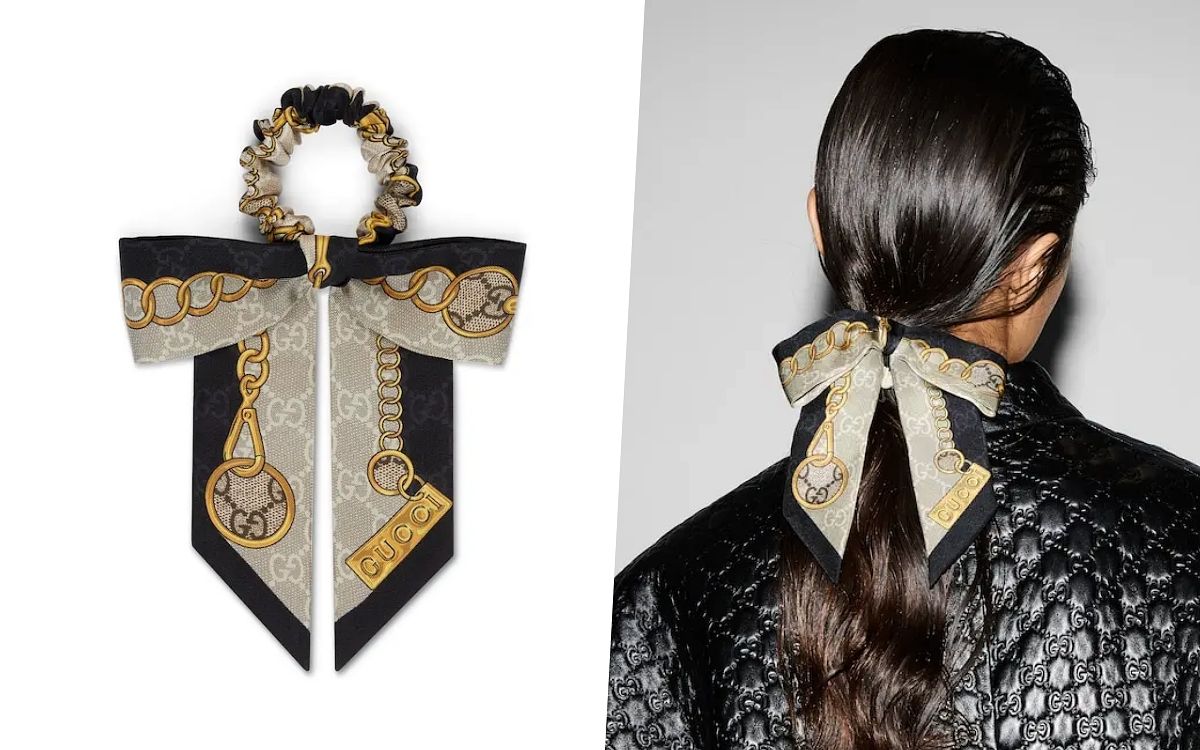 品牌標誌性符號以全新方式煥新呈現,髮圈綴飾Gucci鏈條和GG印花,致敬品牌創始人姓名首字母和品牌馬術本,而使用桑蠶絲面料也讓髮飾的質感更加精緻,日常綁髮時就能輕鬆完成搭配造型。