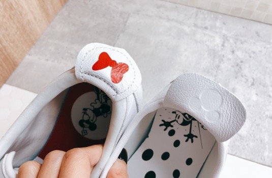 鞋款色調運用米奇代表色系熱情紅、簡約黑與白色三色,視覺上充滿迪士尼歡樂風格!此系列為男女款式,不同色系搭配也能創造情侶穿搭的甜蜜默契呢!