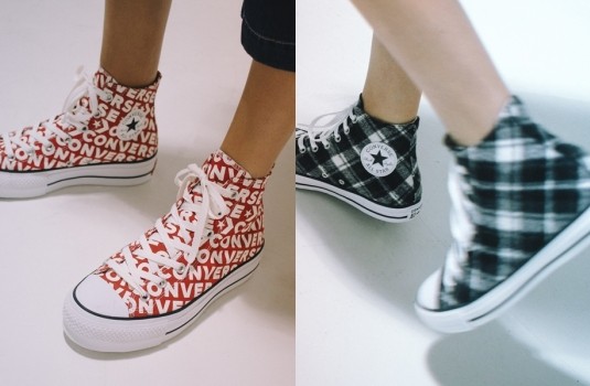 以百年經典的Chuck Taylor為主體,秋冬溫和的淺棕色搭配亮橘格紋厚底帆布鞋款與黑白灰毛呢鞋款,提供俏麗個性或酷帥低調的女生選擇。