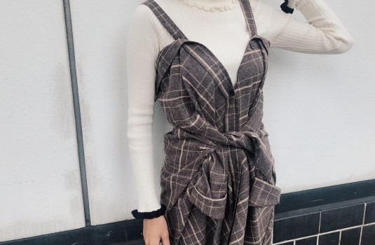 一看到這件復古色調的格紋襯衫就很喜歡,布料硬挺而且線條中帶有杏色,可以立刻提亮膚色,重點是這件襯衫本身還可以當洋裝及長裙穿著,所以立刻命中我的心!比起正規的單穿,內搭高領、丹寧褲及皮帶看起來更加俐落,視線上移比例更好!另外,也不要覺得復古格紋就不能休閒,混搭粉嫩色大學T就能穿出隨性自在的風格呢!
