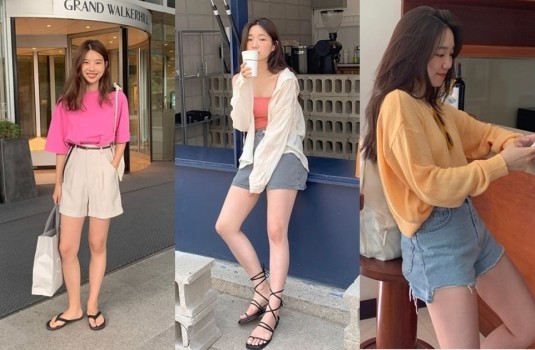 進階版的短褲顯瘦搭配,就是將原本的白色上衣,轉換成亮色系的款式,原理就和祕訣3一樣,搶眼的飽和色調,會讓人將視線集中於上半身,自然就不會過度注意到下半身的線條囉!