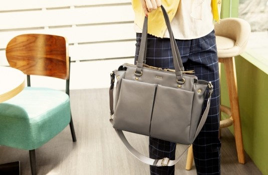 輕巧小托特包搭配柔軟皮革,巧妙配置雙前袋設計便利小物收納,加上金屬貼心暗釦收納不外露,精緻細節如手工編織拉鍊引手,並附可調式織帶背帶及皮革背帶可更換搭配完美造型。