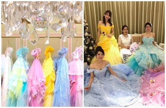 迪士尼公主在卡通裡面總是穿著閃亮的禮服,不僅成為女孩們幼童時期的幻想,長大之後還是有不少人都會希望自己有一天可以穿上這些美麗的華服,日本一間婚紗公司THE HANY就滿足了許多女性的夢想,以愛麗兒、貝兒、仙度瑞拉還有樂佩,推出4種完全不同設計以及顏色的單品,層層粉色的紗裙搭配玫瑰花等裝飾,整個超級夢幻又華麗。