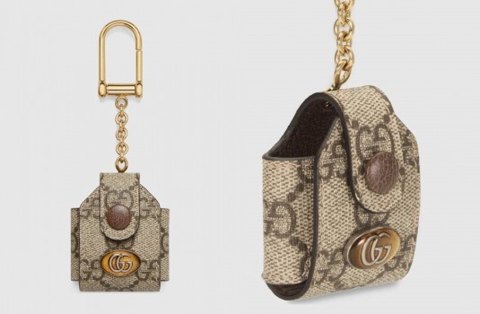 GUCCI也推出了品牌專屬的豪華版AirPods殼了!採用棕色粒面皮革材料製成,並且裝點著時尚的GG徽標圖案,正面有可將無線耳機固定的按扣帶,拿取非常方便,正在尋找AirPods保護套的妳快將它列入購物清單中吧!