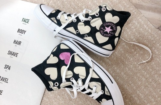 最新推出的愛心系列,以CONVERSE經典Chuck Taylor All Star鞋款為主角,加入可愛的滿版心型圖案,以黑白色打造,並點綴局部粉紅色調,打造出好搭配又甜美的鞋款,也能立刻為穿搭增添亮點!