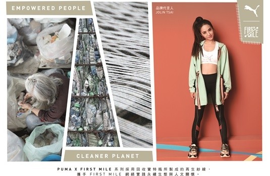 全球運動領導品牌 PUMA 不僅在運動科技研發上不斷追求進步,更將永續生態視為不變的企業承諾,以實際行動在供應鏈中減少碳排放、電力消耗、與空氣汙染。秉持永續發展、友善環境、實踐「Forever Better」的永續生態承諾,PUMA 特別選在 4 月 22 日世界地球日前夕與英國環保回收人文機構 First Mile 合作攜手為地球發聲,利用來自海地、宏都拉斯、及台灣的回收寶特瓶再製紗線,透過 PUMA 引以為傲的潮流設計底蘊,推出全系列 PUMA x FIRST MILE 環保機能系列商品,為運動時尚注入生態永續能量。擔綱 PUMA 品牌代言人的 Jolin 蔡依林更共襄參與這次深具意義的合作企劃,親身演繹 PUMA x First Mile 環保運動時尚,穿上一襲湖水綠機能連帽風衣外套,套上 PUMA Erupt TRL by FIRST MILE 戶外慢跑鞋款,實踐用運動熱情為地球發聲,傳遞高機能、型潮流、與環境生態的永續金三角。
