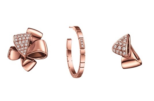 ulala系列名稱取自日本詞彙中「春暖」一語,聽來浪漫如詩,以櫻花金的淡粉色作為設計基調,呈獻出宛如春季般的和煦柔美,而如緞帶褶飾的新穎設計,及綢緞般的流暢線條,刻劃出輕悠的柔波,映襯出東方女性的溫婉氣質與粉嫩肌膚。鑲嵌於弧面上的璀璨鑽石,細膩地點綴在櫻花金質地上,恰如其分地襯托出迷人魅力,為日常造型搭配添加活潑輕巧的風格。