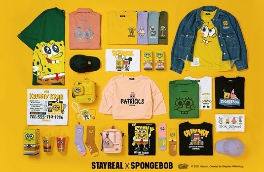 自2013年STAYREAL首度與海綿寶寶合作,一鳴驚人地發無厘頭想像力,從此雙方結下深厚情誼!而STAYREAL主理人阿信也是眾所皆知的海綿寶寶鐵粉,多次大方示愛海綿寶寶,更宣稱海綿寶寶是他的「Lover」!這回好友再度攜手合作,雙方好交情濃度再提升,強力放送快樂至上的純真信念!這次推出的海綿寶寶聯名系列特別讓阿信來參一咖,首度為阿信推出量身訂製款,讓他能把最愛穿上身圓夢!另外這次聯名系列還找來海綿寶寶的好夥伴們一同助陣,包括派大星、珊迪、章魚哥都躍身成為超搶眼T-shirt主角,還有保持社交距離T、印有蟹堡王菜單的外送連帽T,多款趣味圖騰讓大家會心一笑!就連夏日必備的配件也超吸睛,包括吸管杯、後背包、襪子、老帽款款都值得手刀購入!這波海綿寶寶聯名全系列將於7/10正式發售,老友攜手再次展現無懈可擊的幽默創意,勢必掀起搶購風潮!