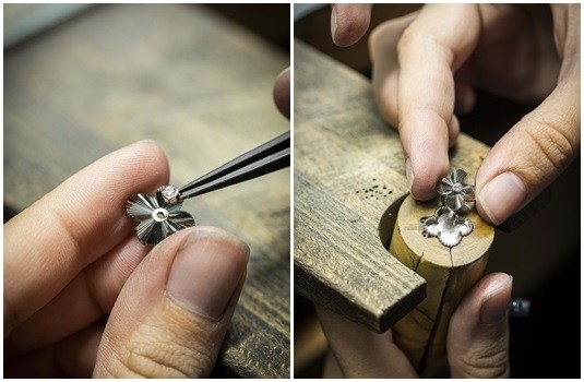 珠寶工藝——組裝中央鑽石及放置Alhambra璣鏤雕花圖騰
