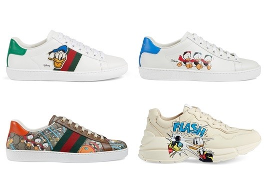 全系列品項囊括男女裝、鞋履、配件、包款,分別採用滿版印花或是個別圖案賦予 Gucci 經典系列充滿赤子之心的復古情懷;部分款式印花呈現相機亮起閃光燈為唐老鴨拍照的可愛瞬間,生動重現漫畫風格。飾品系列皆以純銀材質製作,採用色彩亮麗的琺瑯描繪唐老鴨暢笑與充滿童趣風格的火箭圖案。