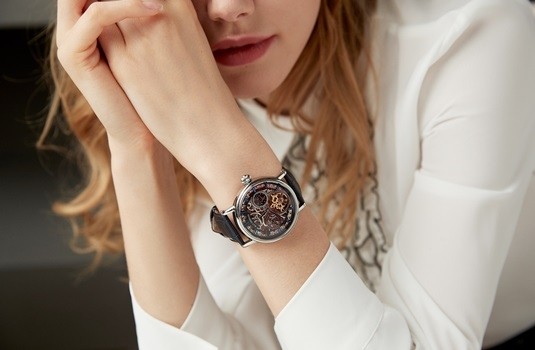 《極光藝術星辰機械錶》的最大特色在於其繁複的細節,透過全鏤空的設計展現機芯律動之美:機芯藏有22顆水晶寶石。表上的三個圓形設計分別顯示星辰、秒針以及兩地時間,採用更有個性的大表面,讓使用者更容易欣賞到表上宛如舞台般的分秒律動,並以真皮鱷魚壓紋回應整體設計的奢華氣質。