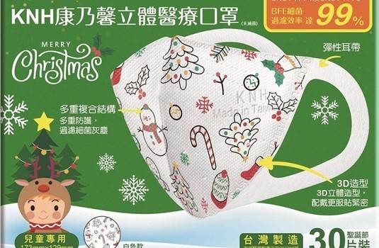 康乃馨3D立體兒童醫療口罩-聖誕節(白/未滅菌/30片/盒) 359元,福利卡友加贈50福利點 12/12