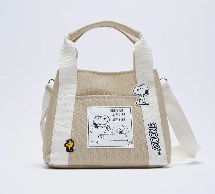向來帥氣的ZARA陷入了史努比狂潮中!這款奶茶色的史努比包款,以經典的黑白漫畫風格為設計主軸,融合了花生家族的可愛感,也不失ZARA本身時尚態度。