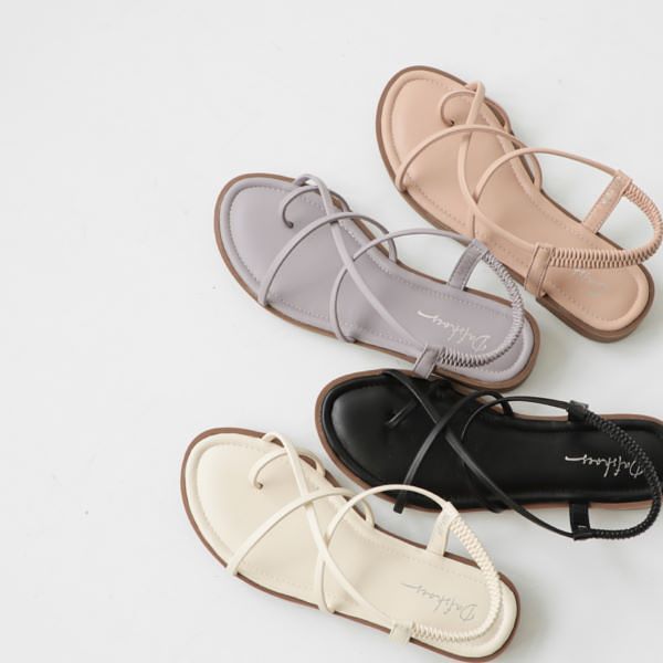 【涼夏氣息.交叉細帶套指低跟涼鞋】