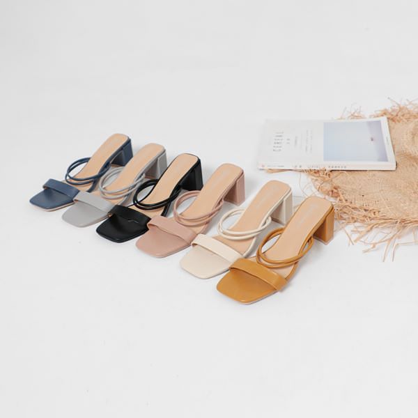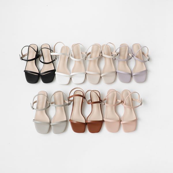 【微風輕夏.一字細帶方頭中跟涼鞋】