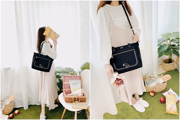 史上最萌擔當—史努比和胡士托來囉!這次以精緻刺繡圖案的雀躍模樣,邀妳一起Have Fun。史努比聯名「Have Fun野餐包系列」採用輕量防潑水尼龍材質,構成了輕巧的包身及恣意的多層收納空間,讓妳隨心就能揹上。包款上綴以真皮皮革滾邊設計,除了獲得悠閒感受也能增添時髦質感UP!系列包款皆掛著附金燦飾牌可拆式毛球吊飾,隨著妳的輕快步伐擺動著,圓呼呼的好可愛!一口氣推出包含實用托特包、多功能後背包、輕巧斜背包及時髦水餃包等共6款,搭配各種日常穿搭,營造俐落體面的休閒風格。