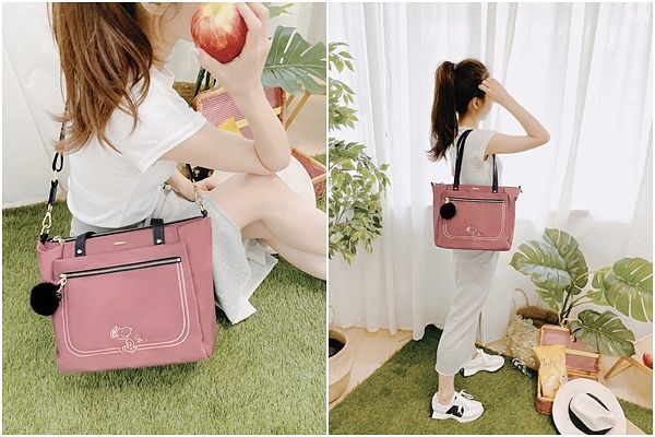 KINAZ x SNOOPY™史努比聯名款多層輕量防潑水尼龍毛球肩背斜背托特包