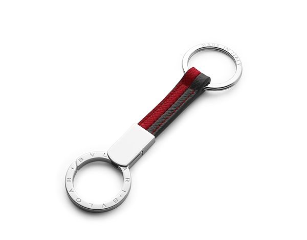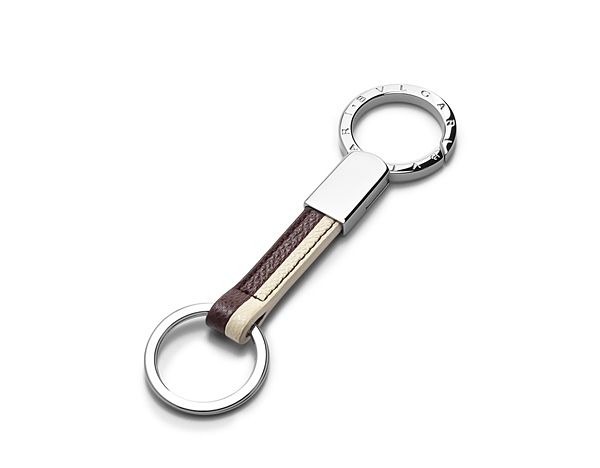 BVLGARI 皮革與鍍銀扣環鑰匙圈