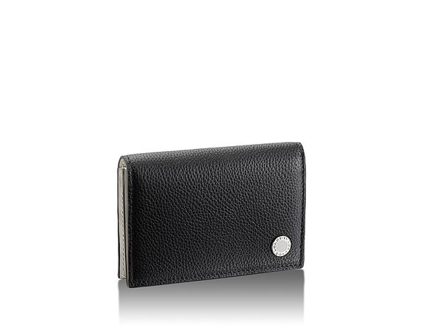 BVLGARI BVLGARI黑色小牛皮卡夾,1個收納夾層跟5個信用卡夾層,鍍銀扣環鐫刻品牌Logo標誌。