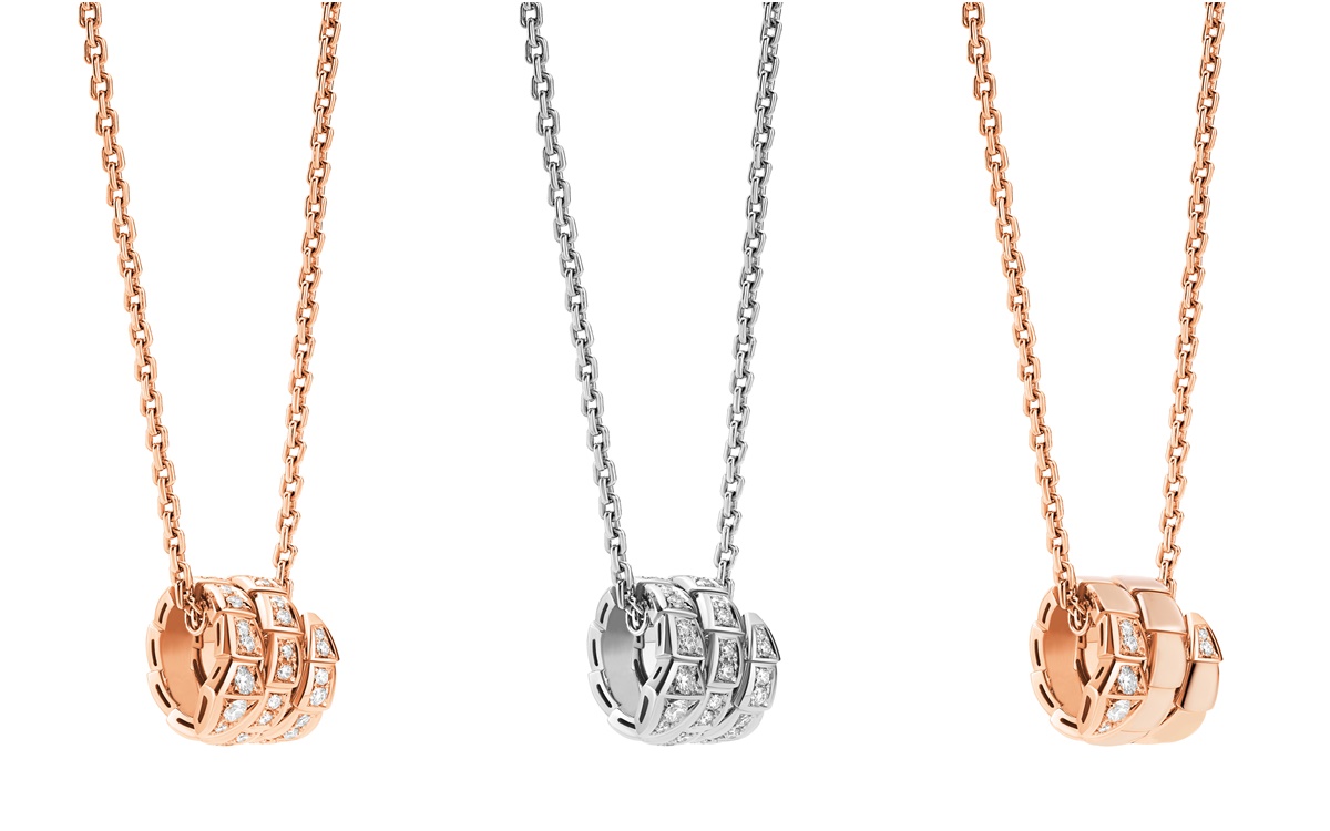 Serpenti Viper 玫瑰金墜鍊,飾以密鑲鑽石。