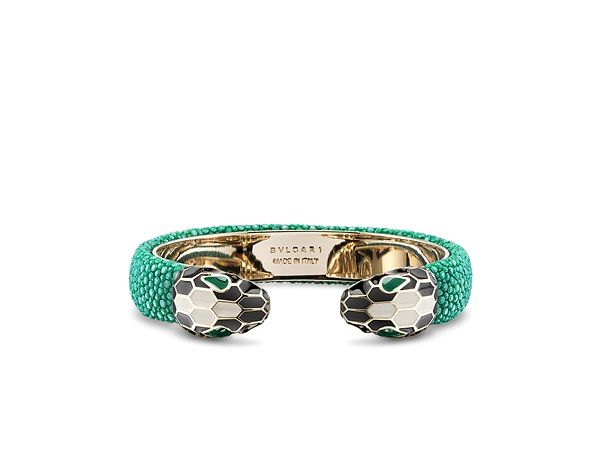 BVLGARI Serpenti Forever祖母綠色珍珠魚皮手環