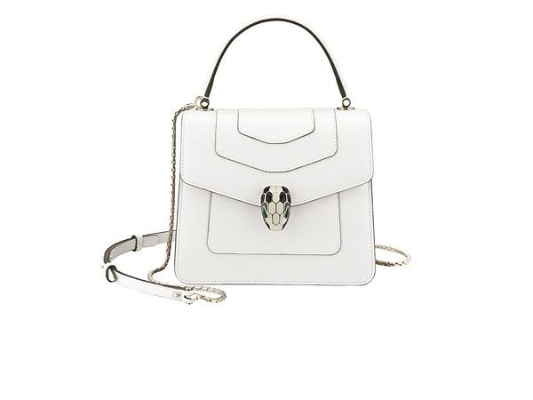 BVLGARI Serpenti Forever淨白瑪瑙色小牛皮手提肩背包