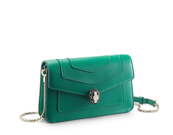 BVLGARI Serpenti Forever祖母綠色小牛皮Wallet On Chain手拿包