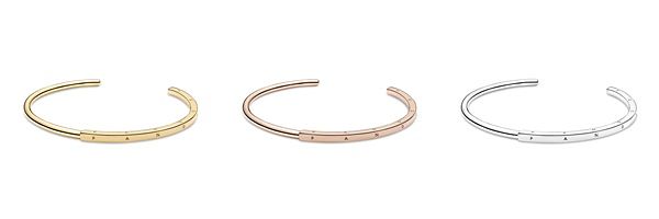 系列亮點 I-D 手環,也是首次於 Pandora Signature 系列中亮相的款式。開放式手環極簡的線條設計,靈感源自具幾何線性美感的建築輪廓,過渡方形和圓形的獨特設計,巧妙揉合剛毅和圓潤的特性,創造出最美好的平衡。光滑金屬表面其上鐫刻 Pandora 字母作為點綴,帶來低調不喧嘩卻擁有高度存在感的獨特美感。備有鍍 14k 金、鍍 14k 玫瑰金和 925 銀三種款式,單獨配戴能展現個性,疊戴多個不同金屬色澤更能營造時尚新鮮感。