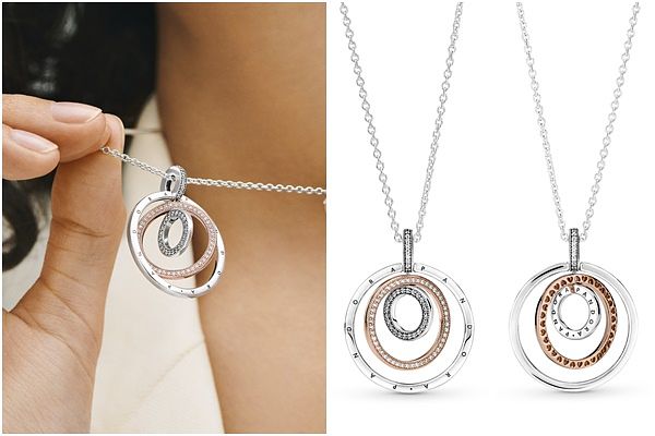 Pandora Signature 雙色璀璨三環項鏈 價值NT.5,380