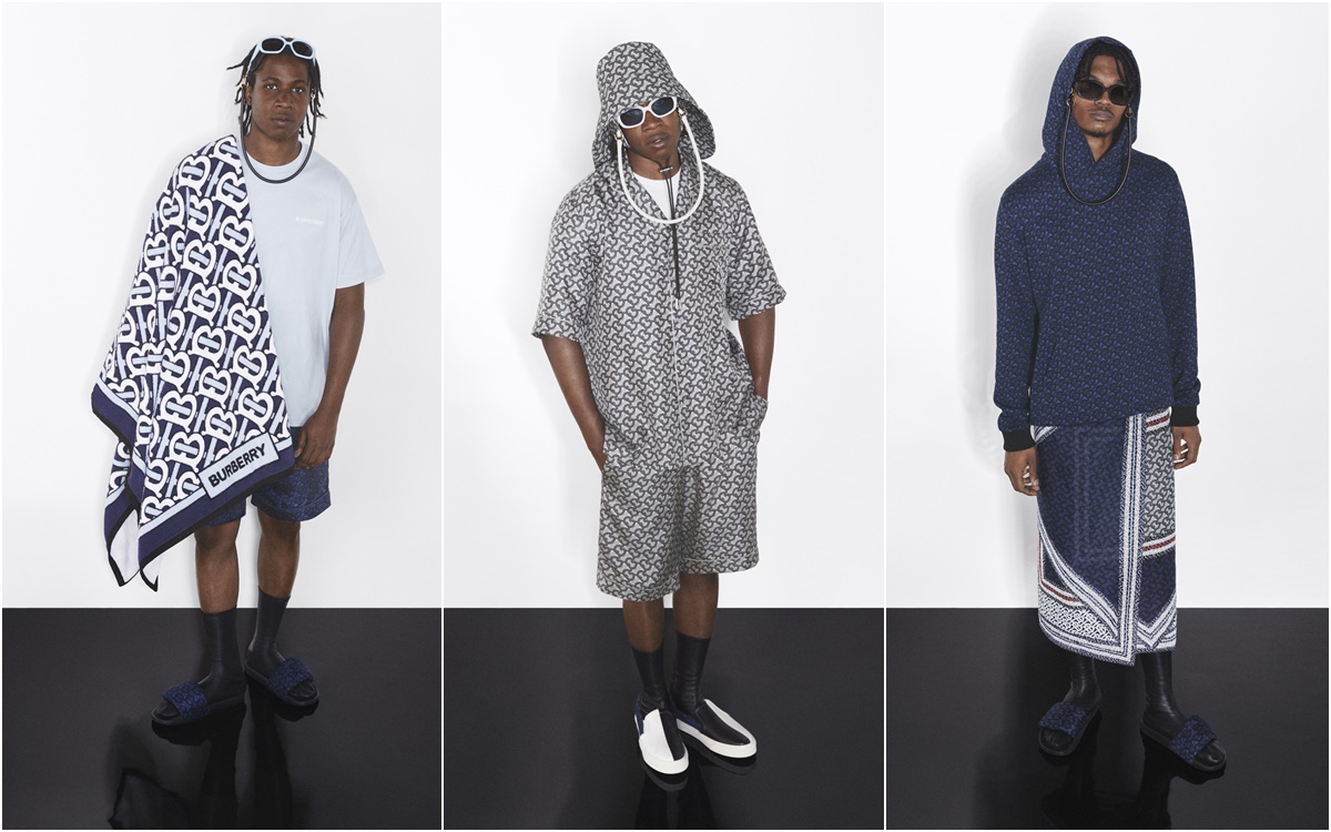 此作品由 Riccardo 與令人讚嘆的創意團隊共同創作而成。團隊成員包括攝影師 Danko Steiner、造型師 Catherine Baba、彩妝師Adam Fleischhauer 及髮型師 Jawara,另外也與視覺藝術家 Frederik Heyman 合作,以獨特的 CGI 風格創造這支形象視覺。TB 花押字是向品牌創辦人 Thomas Burberry 致敬,緊緊相扣的首 TB 字母,這次採用全新的夏季風格配色,包括鈷藍色、深皇家藍色和中灰色。系列中的輕量單品印有 Thomas Burberry 花押字。