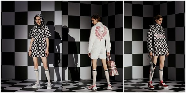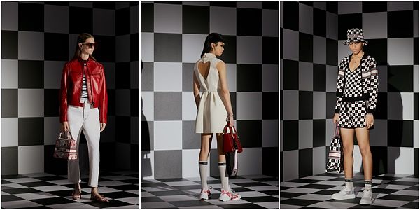一系列作品透過心型的籐格紋絎縫、黑白棋盤格紋及 D’Amour 掛飾的妝點,洋溢充滿愛意的童趣創意與熱情活力。