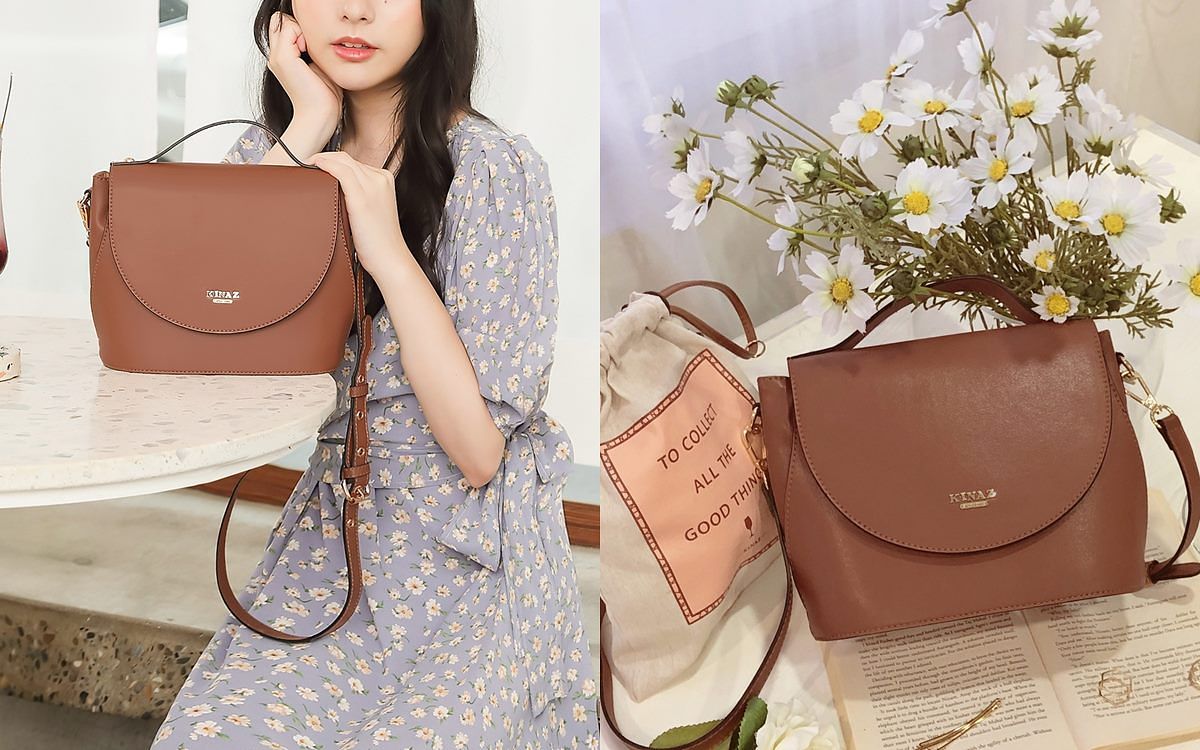 KINAZ 附束口袋掀蓋橢圓底手提斜背馬鞍包