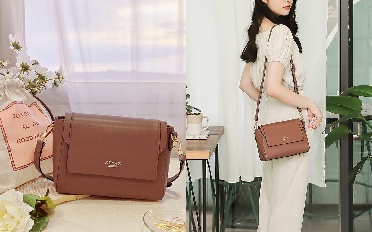 KINAZ 附束口袋掀蓋立體斜背小方包